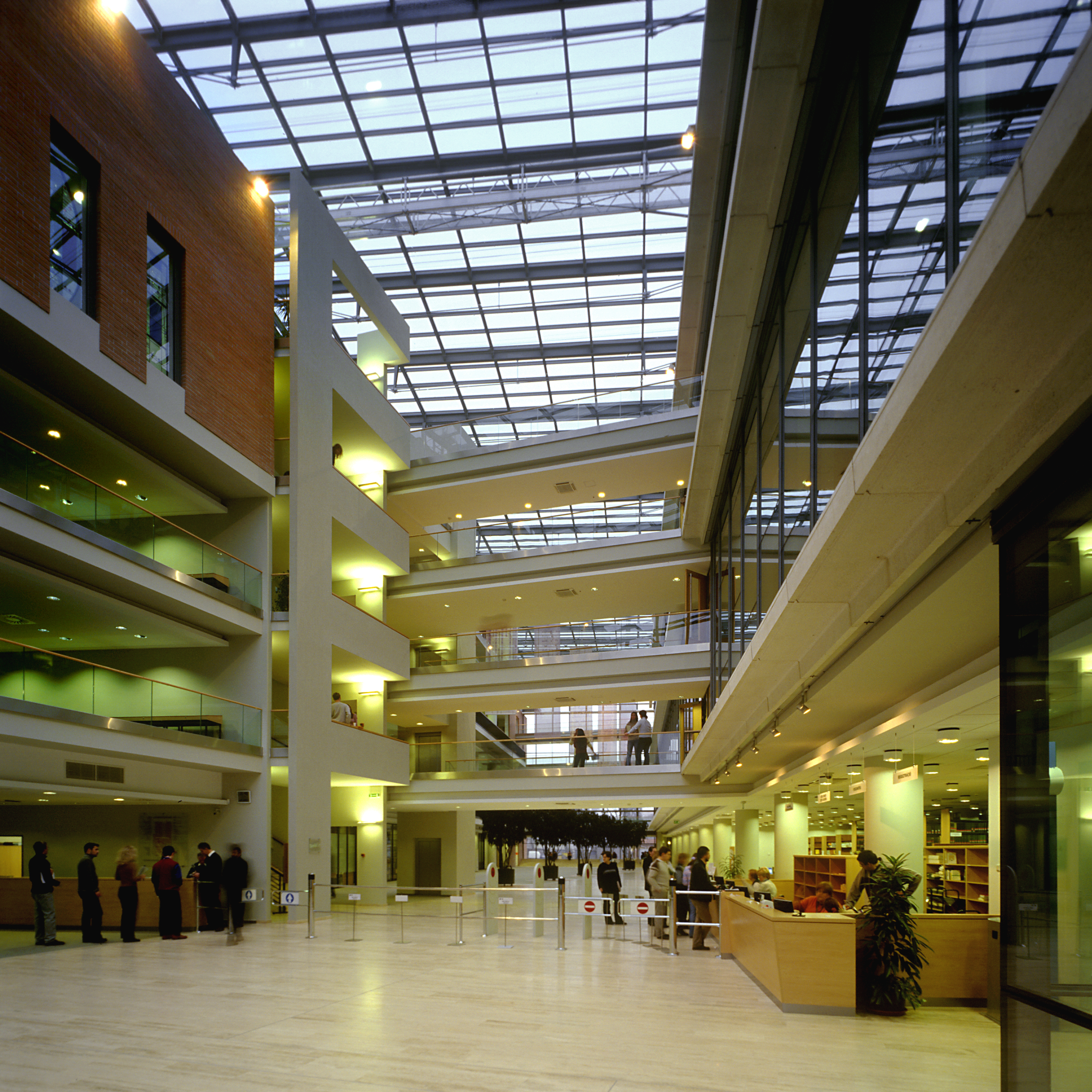Egymillió kötetes egyetemi könyvtár, szabadpolcos olvasóterekkel és raktárakkal, számítógépes tanulóterekkel. Oktatási- és konferencia központ, 700 fős előadóteremmel, 3 db 180 fős szekció teremmel. Terepszint alatti parkoló 170 gépkocsi részére.