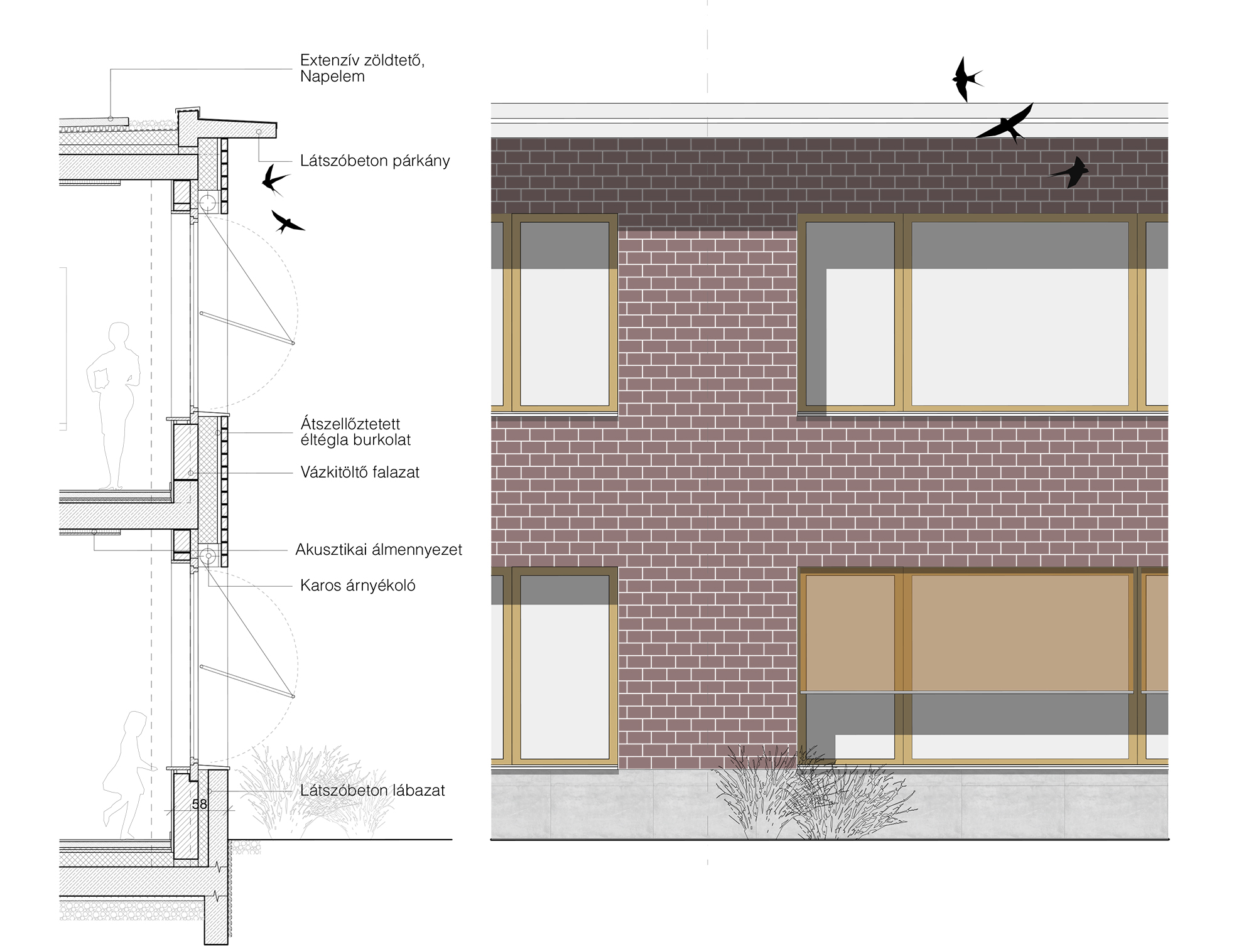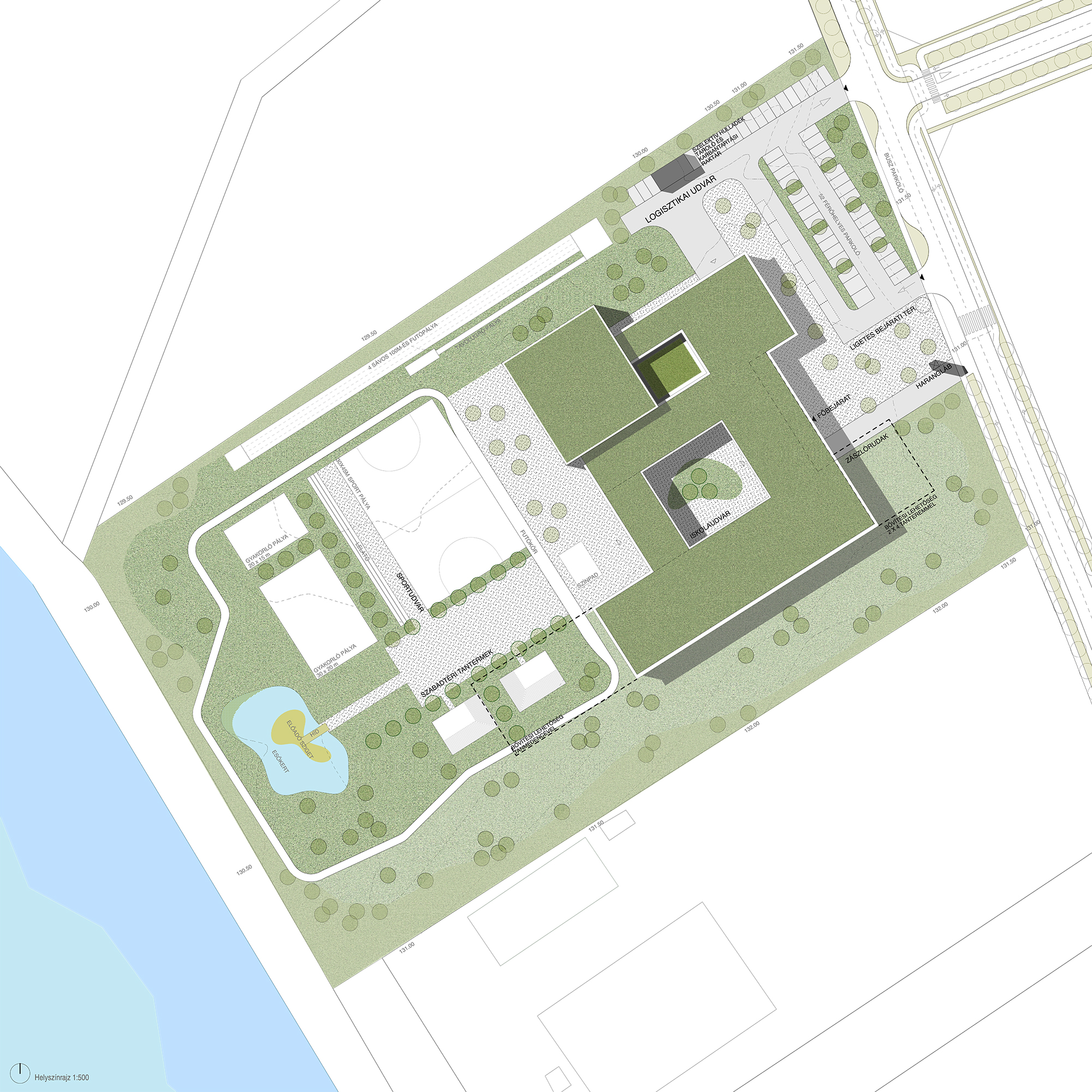 Az épület földszint + I. emeletes, pinceszint nem készül. Ennek oka egyrészt a rendelkezésre álló elegendő telek terület volt, másrészt fontosnak tartottuk a tanulók – főleg az alsó tagozatosok – udvar és kert szinten való elhelyezését.