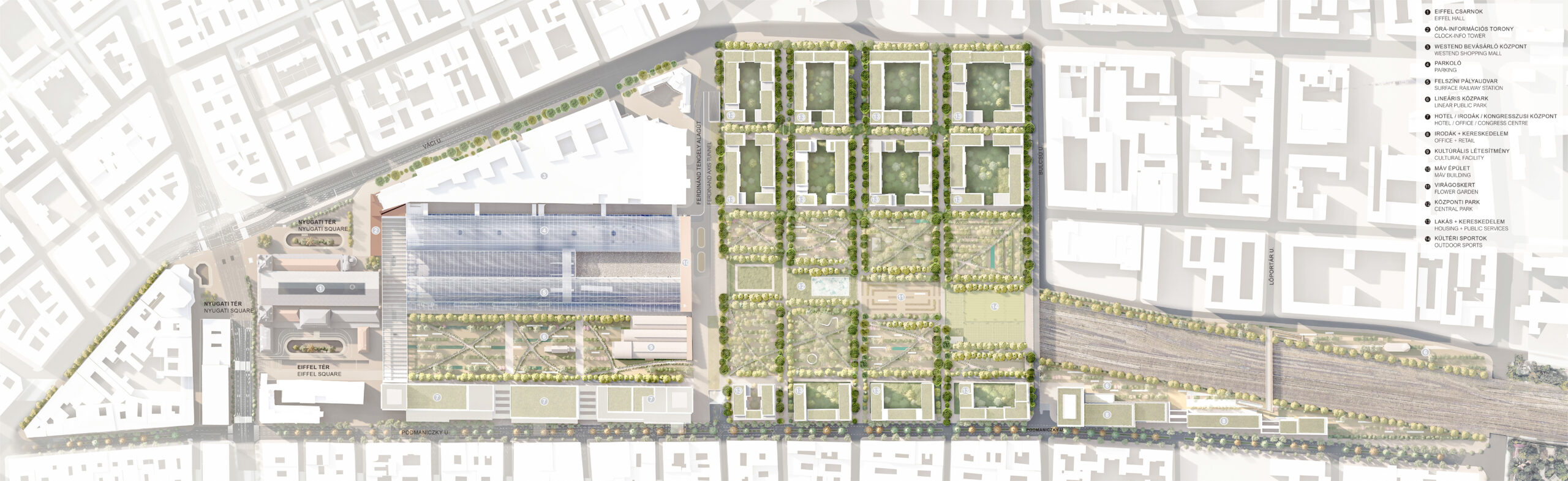 A város történelme és jellemző utcaképe által ihletett Vezértervünk Budapest történelméből inspirálódik és a város meglévő településszerkezetének kiterjesztése.