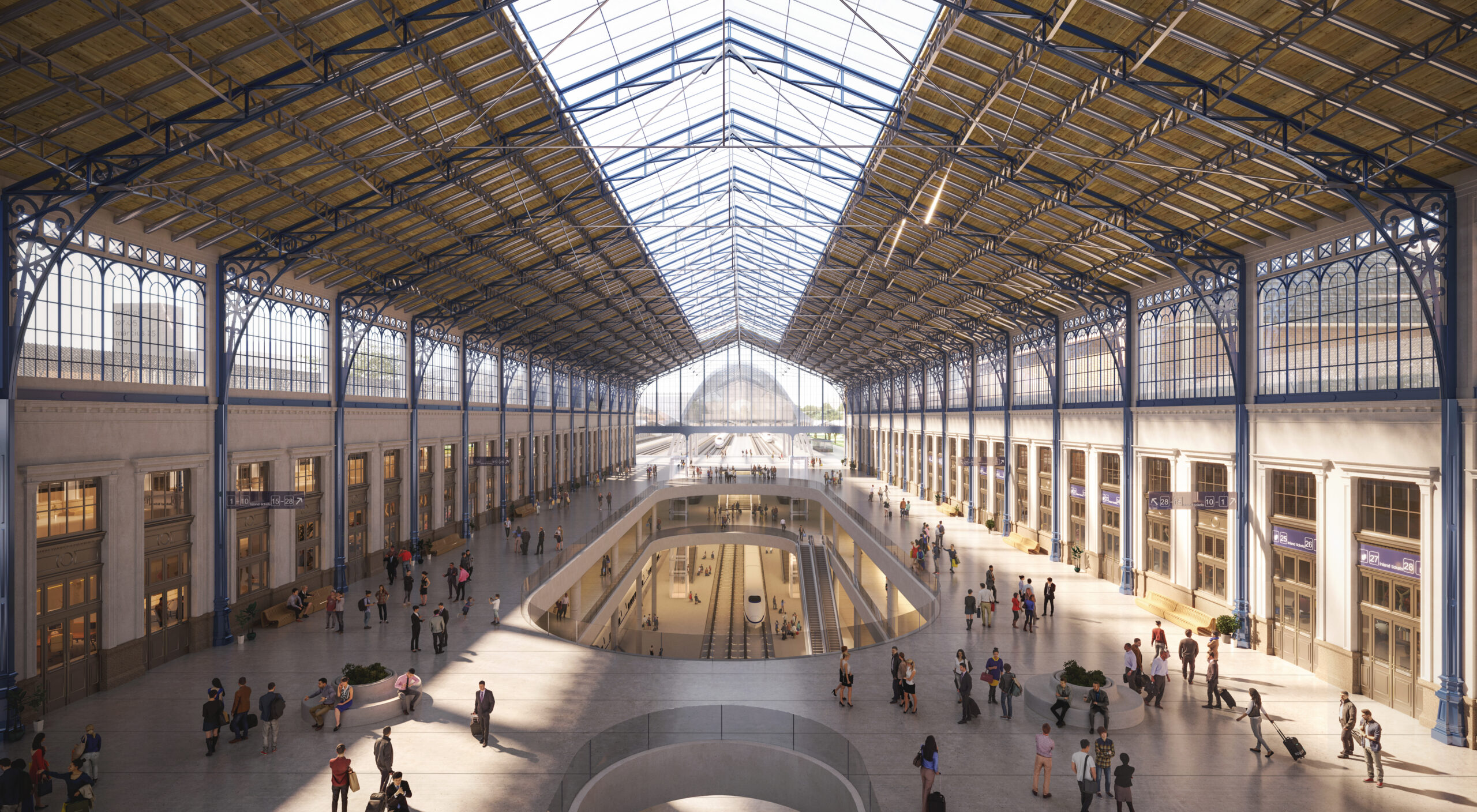 Egy nagy, a peronokra és az Eiffel-csarnokra merőleges, keresztirányú, fedett utca létesül kelet-nyugati irányban a WestEnd bejáratától a kongresszusi központ új bejárati tornácáig. Ez a tengely a történelmi állomásépülethez igazodó magasságú, és a gyalogosforgalom nagy részét a különböző peronok és szintek felé osztja szét